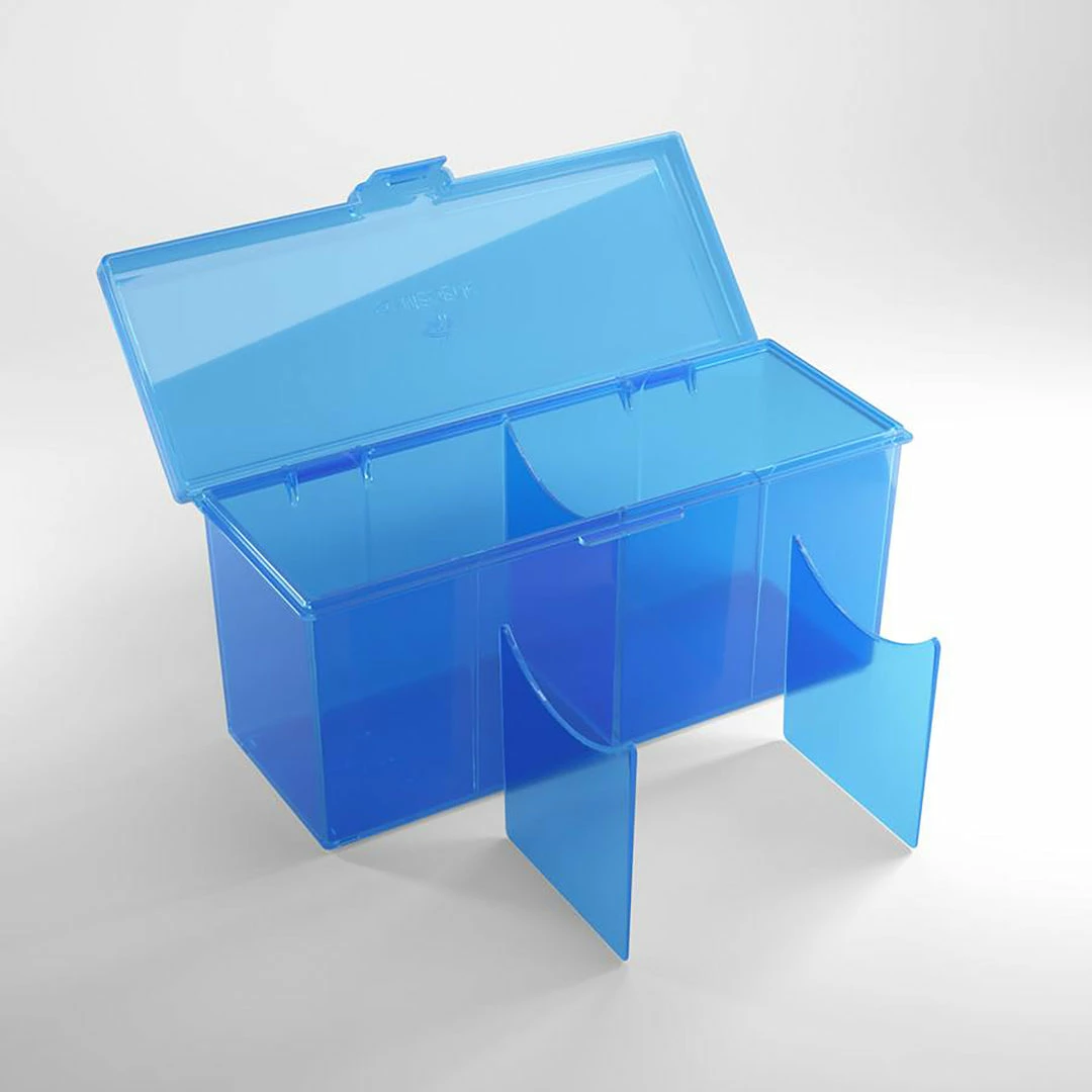Full decks, dice, tokens or 320 double-sleeved cards: there is a lot that the Fourtress can hold and protect! This sturdy box is available in 5 different semi-transparent colors, allowing its contents to be easily identified. The integrated lock keeps it safely closed, while two inner walls can be removed to create bigger compartments. The boxes are stackable, so they are both perfect travel companions and a great storage solution at home.