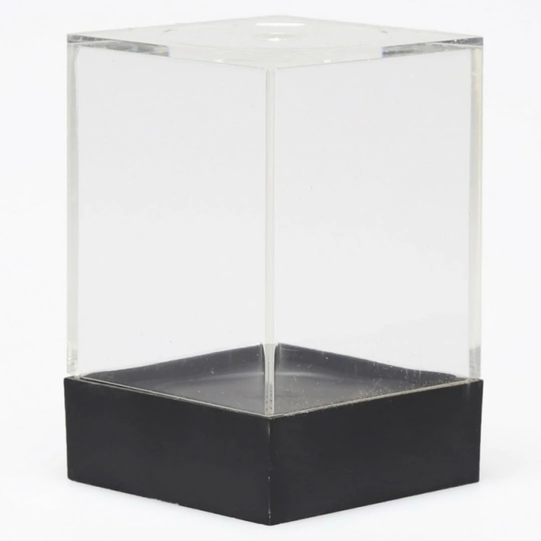 Figure Display Box.Β Clear plastic with black opaque base/lid.