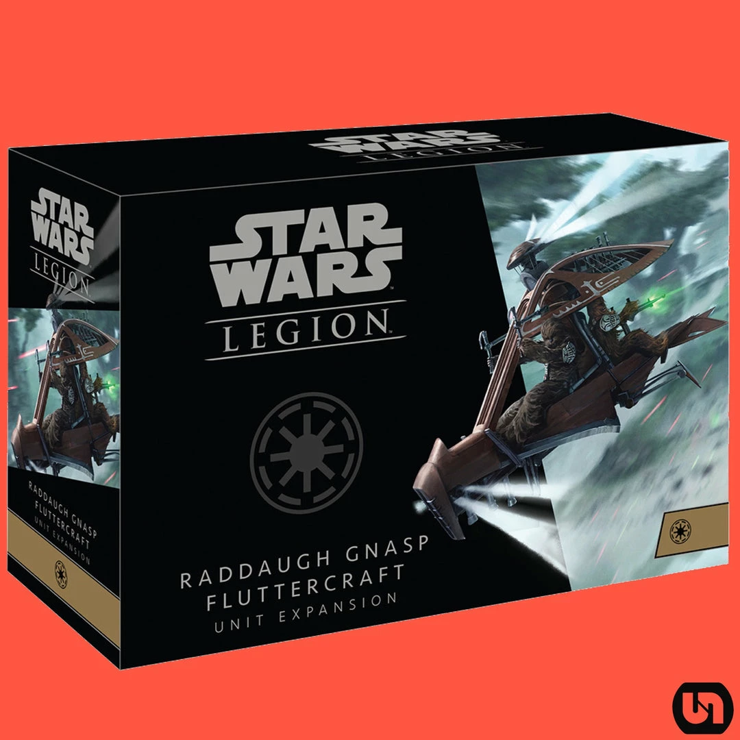 Β Within this expansion, youβll find everything you need to add a Raddaugh Gnasp Fluttercraft to your Republic armies as a support unit. A beautifully detailed, unpainted hard plastic miniature brings this unit to life on your tabletop, while a unit card outlines all of its capabilities, including the new Overrun keyword. Finally, five upgrade cards invite you to choose exactly how this unit behaves in combat.