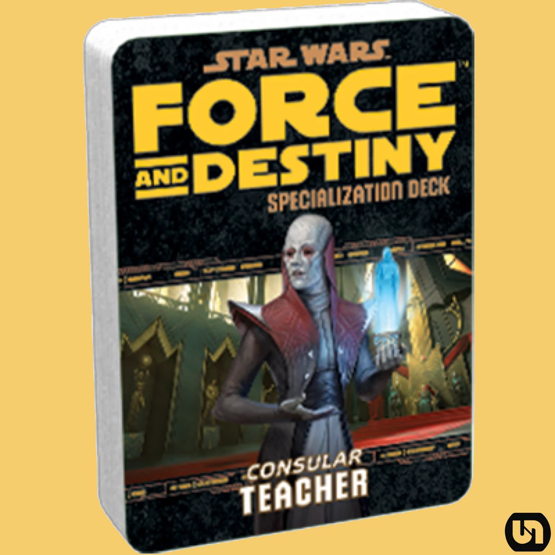 The Teacher has learned all they can and now seek to share that wisdom with others; bring out the full potential of your Consular and their students with the Teacher Specialization Deck for the Star Warsβ’: Force and Destinyβ’ roleplaying game. Each Force and Destiny Specialization Deck includes twenty cards detailing the talents of a specialization. More than just quick reference cards for the gaming table, the Teacher Specialization Deck features thematic art on every card to help bring the Star Wars galaxy to life.After the dissolution of the Jedi Order, how might a Consular knowledgeable in the ways of the Force benefit the galaxy?
