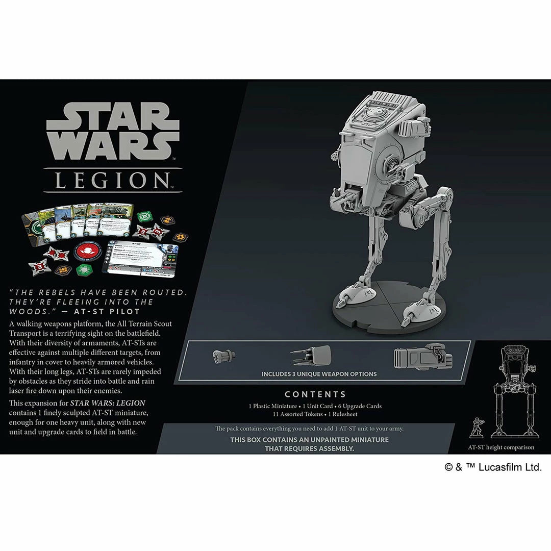 - Dominate your games ofΒ Star Wars: Legion with the single highly detailed AT-ST miniature found in this expansion pack. This AT-ST towers high above every other miniature on the battlefield, and you can equip it with up to three distinct weapon optionsβa mortar launcher, an 88 twin light blaster cannon, or a DW-3 concussion grenade launcher.