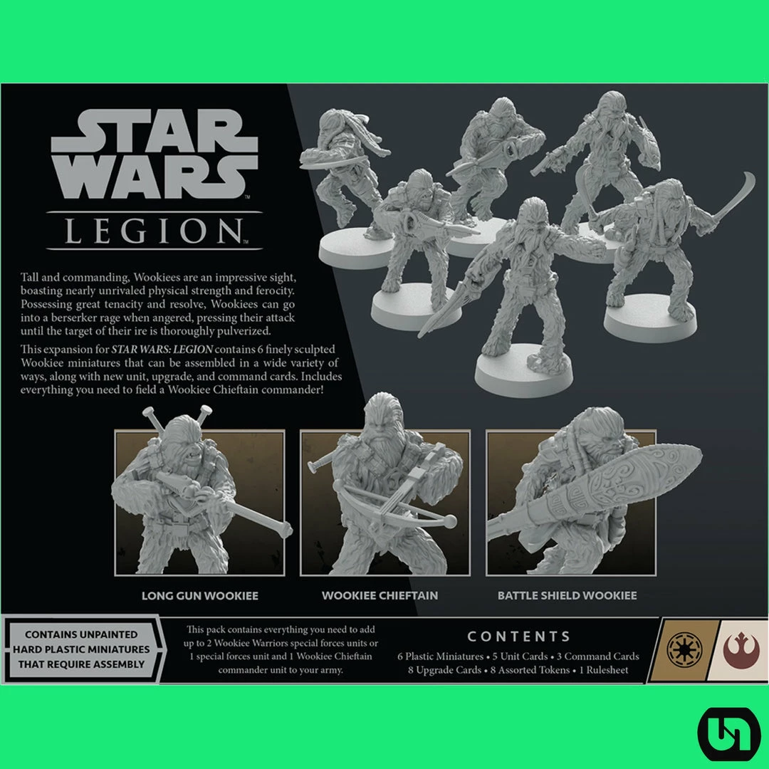 Add a formidable unit of powerful Wookiees to your Star Wars: Legion armies with the Wookiee Warriors Unit Expansion! This tall and commanding species boasts nearly unrivaled physical strength and ferocity, and now both the Galactic Republic and Rebel Alliance can make use of their formidable skills.