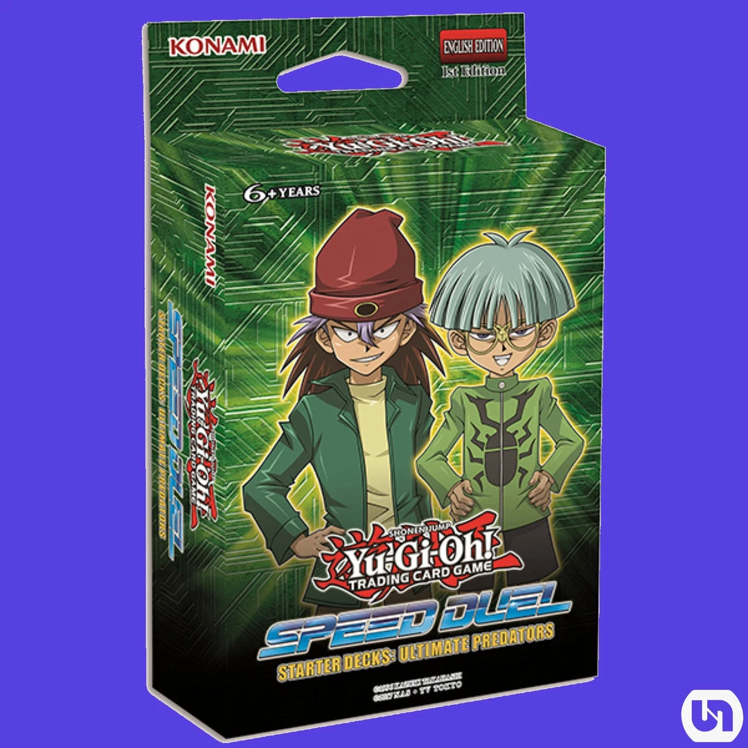 Speed Duel Starter Decks: Ultimate Predators contain 2 ready-to-duel Speed Duel Decks including 2 Ultra Rare variant cards specially chosen to boost each strategy. Each character in Speed Duel Starter Decks: Ultimate Predators comes with 30 cards and 2 brand-new Skills each. Players will be able to adjust their Decks depending on which Skill they want to use with their character, letting you customize your strategy right out of the box!