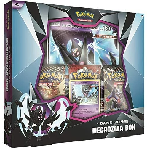 The power of Necrozma has never been like thisโtransformed, wild, and ready for battle in the Dawn Wings Necrozma Box! You get a Dawn Wings Necrozma as a never-before-seen foil promo card, plus an oversized Pokรฉmon-GX card. Your time has comeโtake charge with Necrozma on your side!