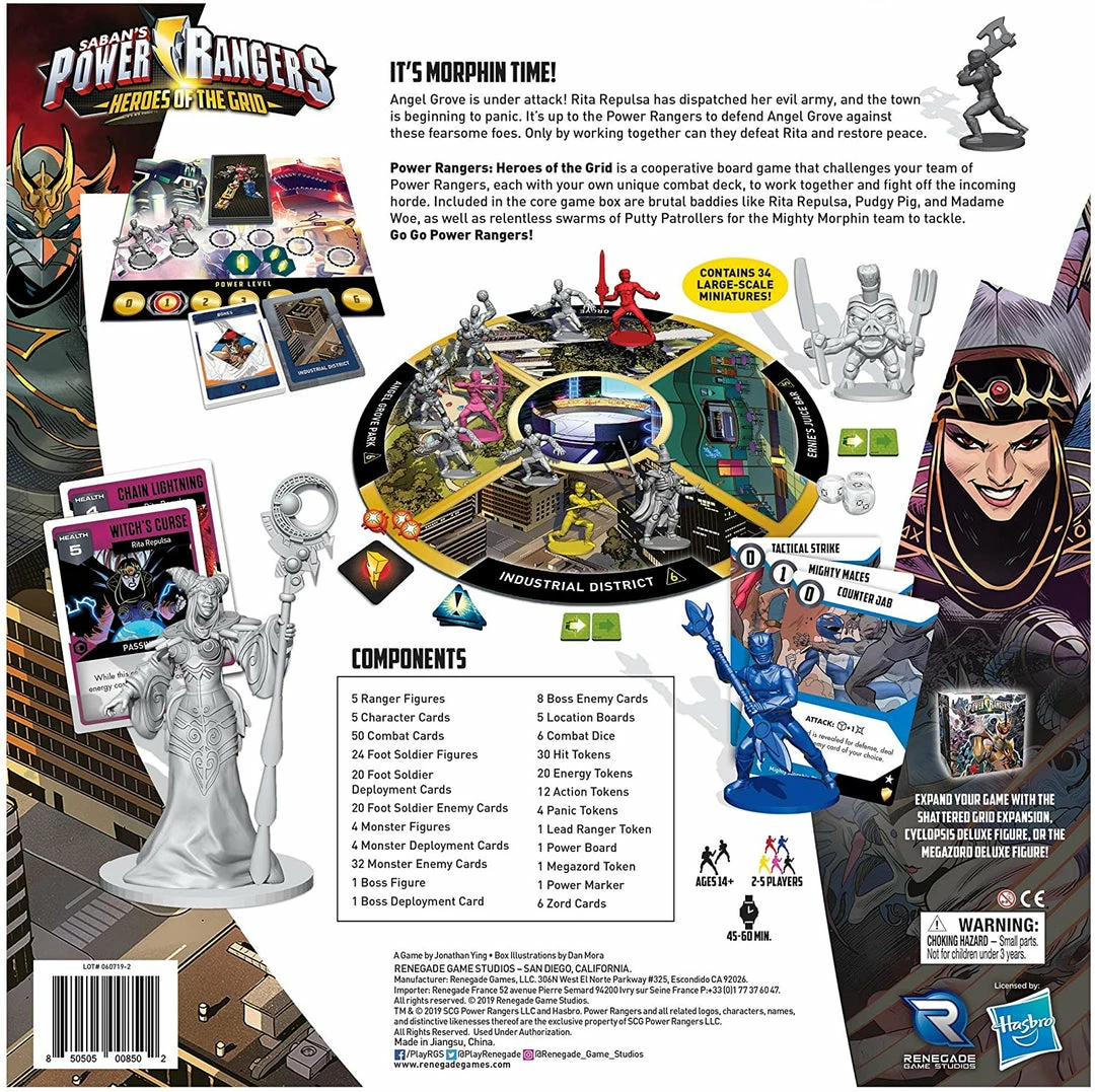 InΒ Power Rangers: Heroes of the Grid, the players take on the roles of the original Mighty Morphin Power Rangers to battle the forces of darkness. In this core game box, you will face Rita Repulsa and her relentless swarms of Putty Patrollers and Super Putty Patrollers, as well as formidable monsters like Bones, Knasty Knight, Madame Woe, and Pudgy Pig. These teenagers with attitude must use martial arts, teamwork, and the power of the Zords to defeat the evil that threatens Angel Grove.