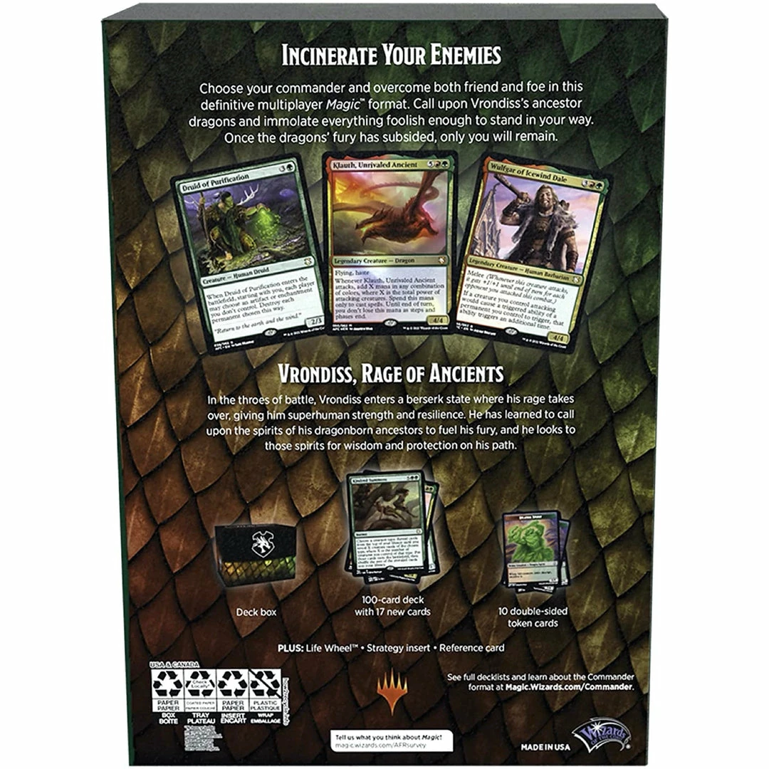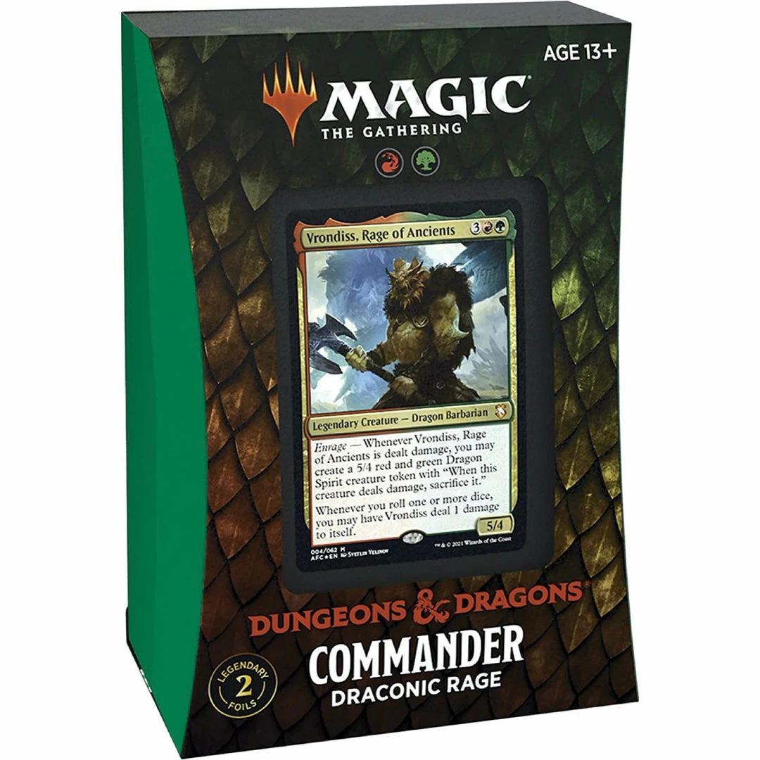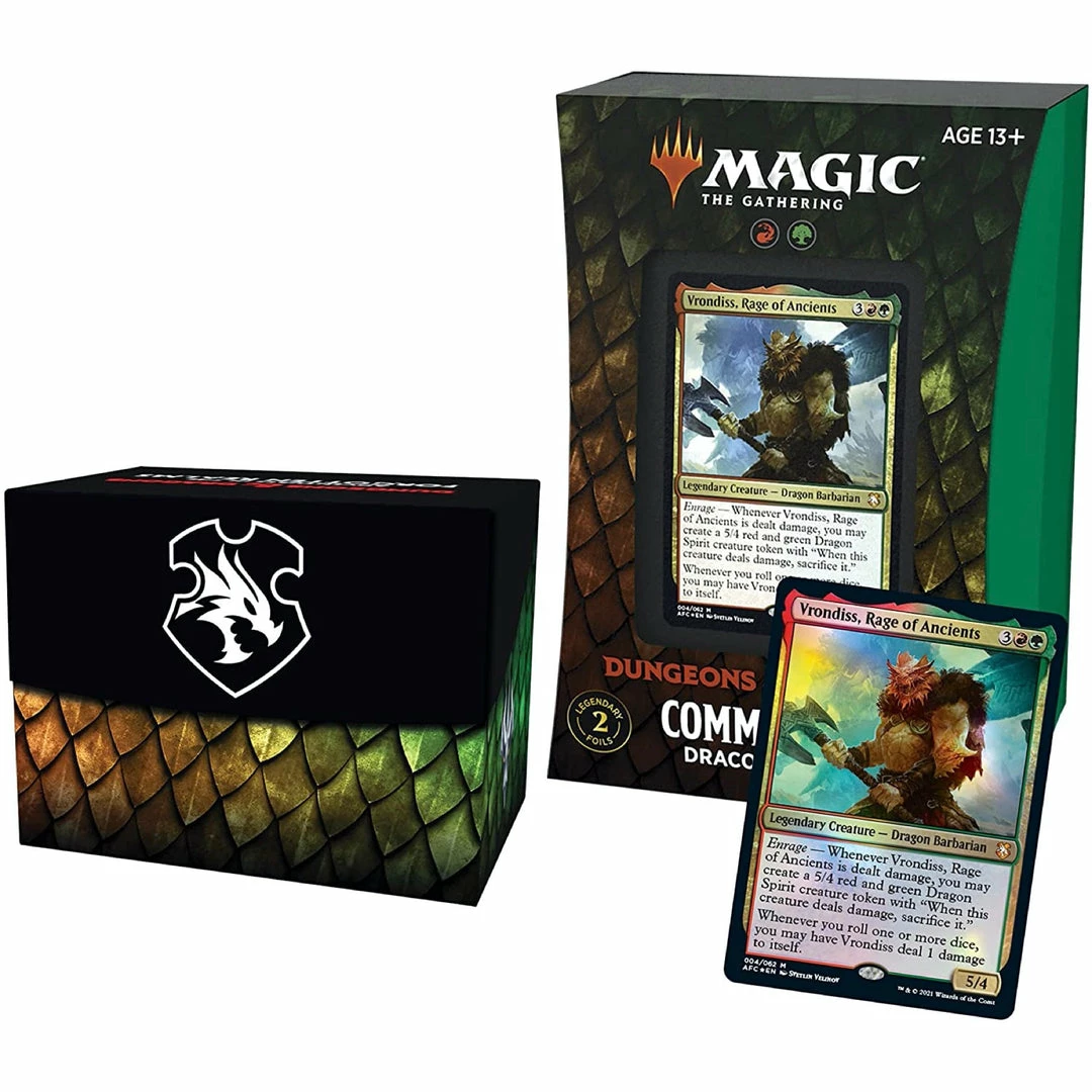 Each Commander Deck contains 1 display Commander card,Β 2 foil Legendary cards,Β 98 additionalΒ Magic: The GatheringΒ cards,Β 10 tokens, andΒ 1 Life Wheel; and each Commander Deck Display contains 4Β Adventures in the Forgotten RealmsΒ Commander Decks.Β